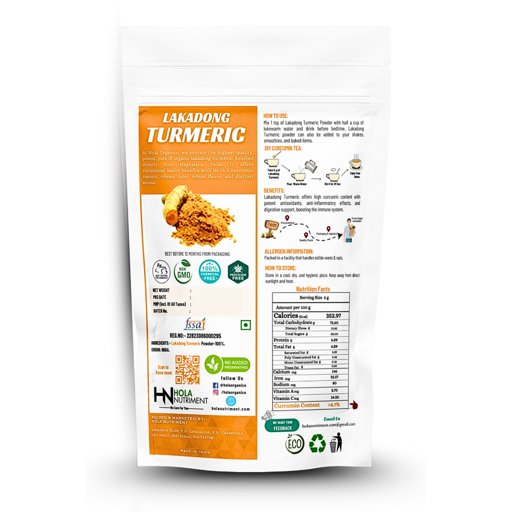Lakadong Turmeric, often hailed as the “Golden Spice,” is a premium variety of turmeric grown exclusively in the Jaintia Hills of Meghalaya, India. Renowned for its vibrant yellow-orange hue and rich aroma, this unique turmeric variety is celebrated for its exceptional curcumin content, which ranges between 7% to 12%, significantly higher than the average turmeric.