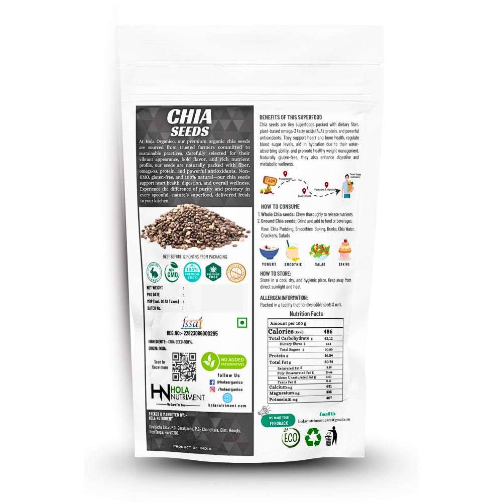 Experience the exceptional benefits of Hola Organico Chia Seeds, a premium superfood. Our 100% pure, organic chia seeds are nutrient-rich, non-GMO, and additives-free.