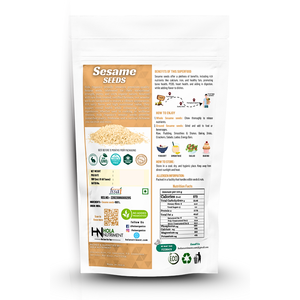 Discover the pure, nutty goodness of Hola Organico Sesame Seeds, a staple ingredient that adds a rich, distinctive flavor and a boost of nutrition to your culinary creations. Grown organically and harvested with care, our sesame seeds are the perfect addition to your pantry, offering versatility and health benefits in every tiny, golden seed.